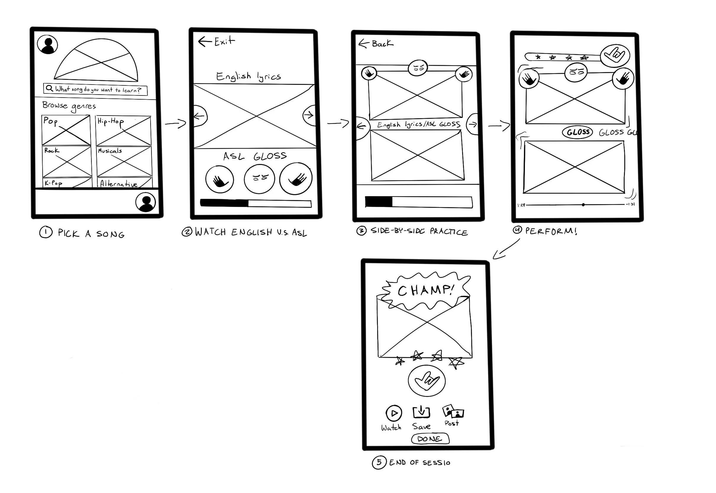 The app uses layouts familiar to those who navigate music streaming services and mobile games, making interaction immediate and intuitive. This structure positions ASL as expressive and rhythmic rather than purely instructional, aligning with the habits of a digital-native audience.